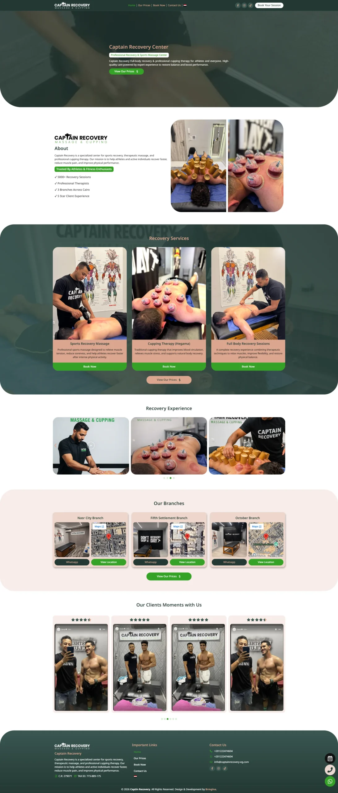 موقع إلكتروني احترافي تم تطويره لصالح مركز Captain Recovery، وهو مركز متخصص في خدمات الريكفري، التدليك الرياضي، والحجامة، موجه للرياضيين والأشخاص النشطين الباحثين عن التعافي وتحسين الأداء البدني.